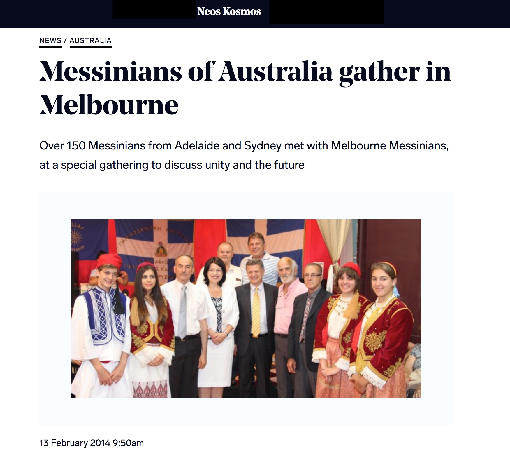and New Zealand, that were created by immigrants from Messinia, in Greece's Peloponnes region, during the post war migration.
