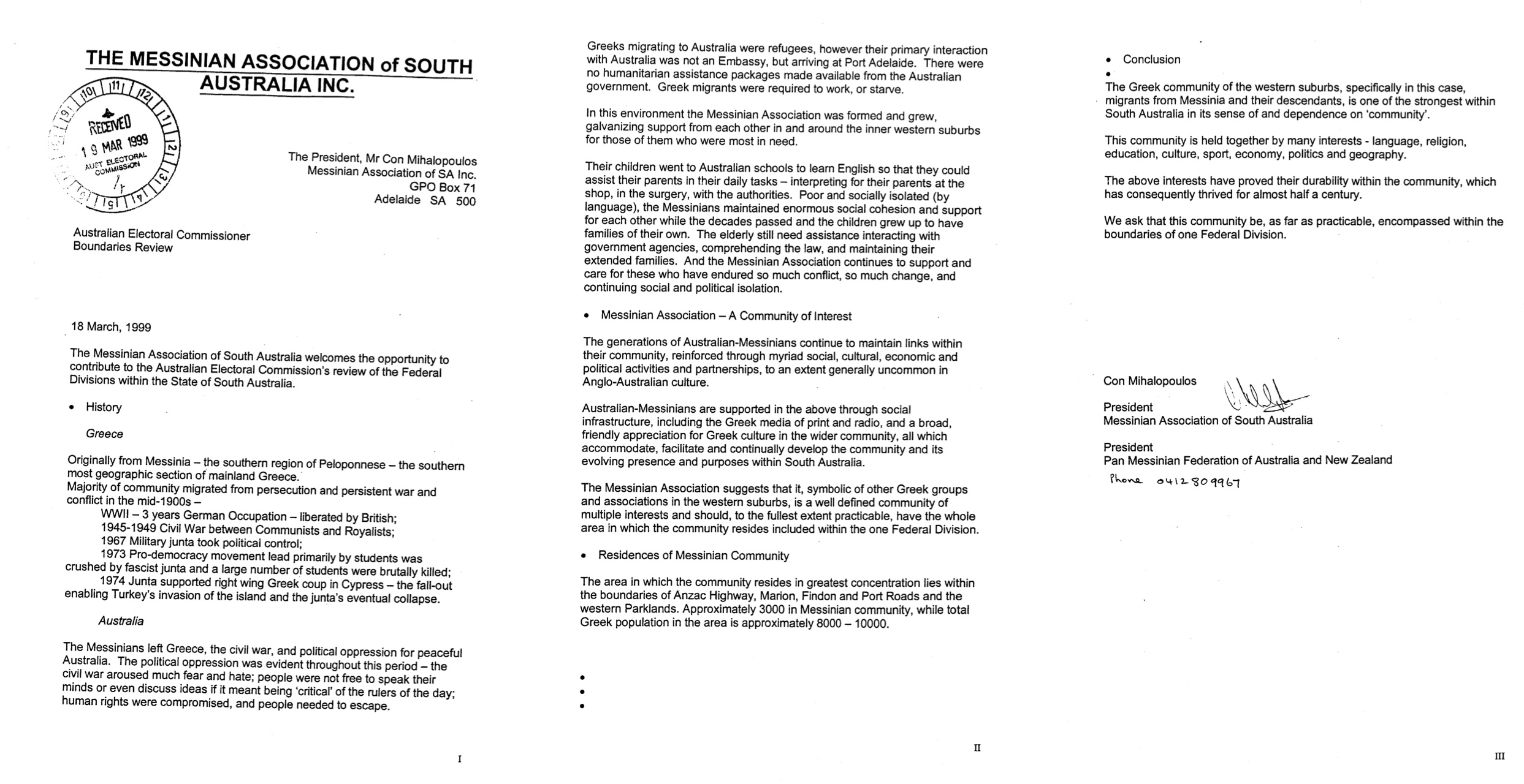 The 'Messinian Association of South Australia' and the 'Pylias Society of S.A. Navarino' from South Australia.